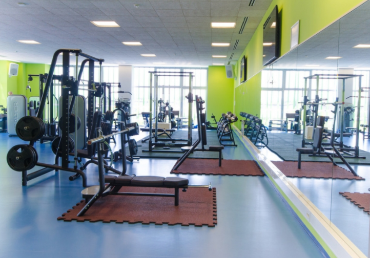 Komplekset har fire etager. I stueetagen er der reception med bar, kontorer, omklædningsrum og en stor gymnastiksal. På første sal er der et opvarmningsområde, omklædningsrum og et fitnesscenter.